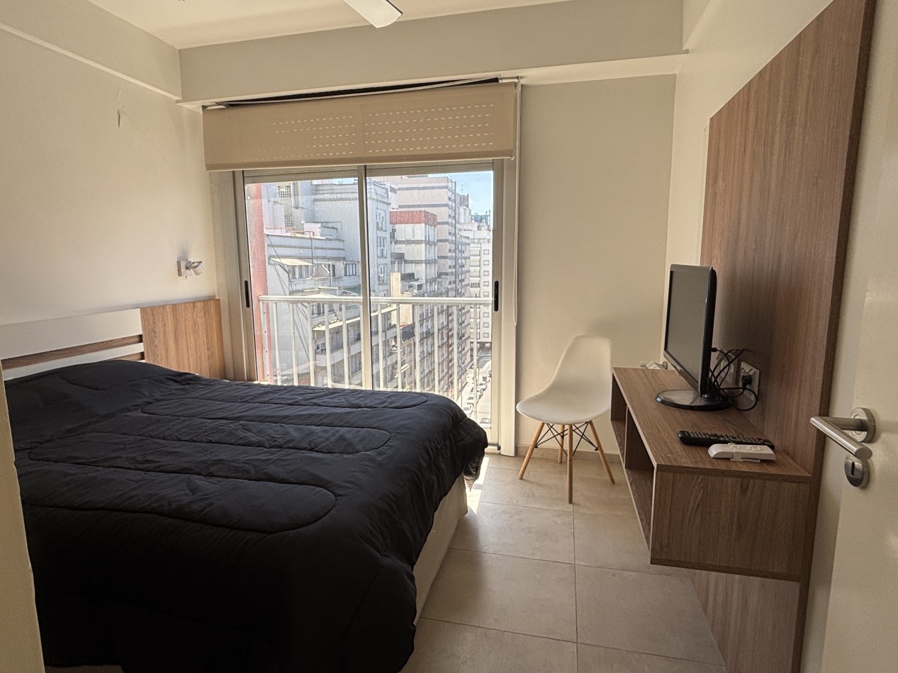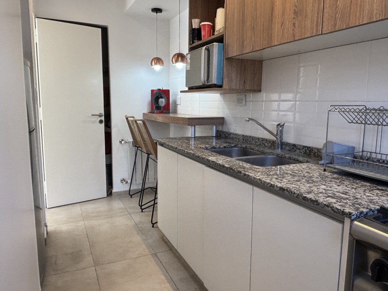 Con una superficie total de 45 m², el departamento ofrece un luminoso living-comedor con salida al balcón, lo que permite disfrutar de la vista y del aire fresco de la ciudad. La cocina se encuentra totalmente separada, equipada con amoblamientos a medida y conexión para lavarropas, pensada para brindar practicidad en el día a día. El dormitorio también da a la calle y cuenta con un amplio placard empotrado hecho a medida, maximizando el espacio de guardado. El baño es completo con ducha, de estilo moderno y funcional.
